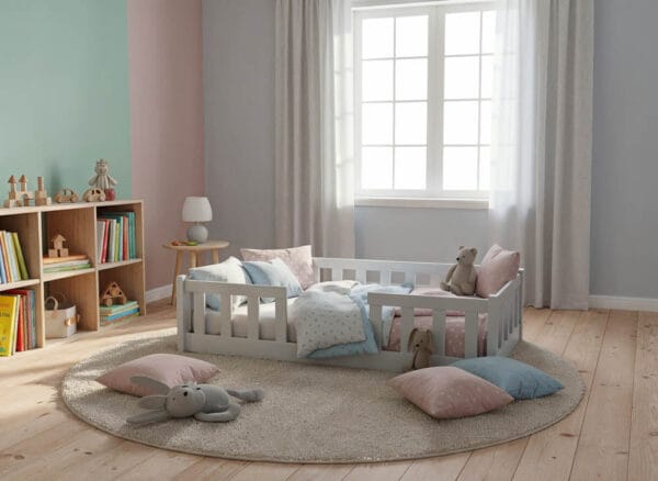 Łóżko domek TUTU na niskich nóżkach (1 cm) to propozycja stworzona z myślą o najmłodszych dzieciach, które dopiero rozpoczynają swoją przygodę z samodzielnym spaniem. Obniżona konstrukcja ułatwia dziecku wchodzenie i schodzenie z łóżka, jednocześnie zapewniając pełną stabilność i komfort użytkowania.